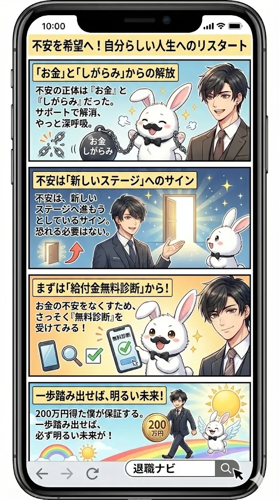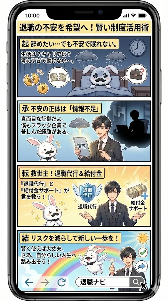 不安は生存本能が生み出す幻想です。退職代行や給付金制度を賢く使い、リスクを最小限に抑えながら、あなたが心から笑える毎日を取り戻しましょう。