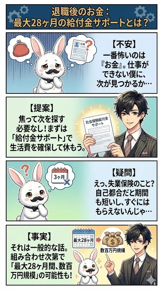 辞めた後の生活が不安な方へ:最大28ヶ月の「社会保険給付金サポート」