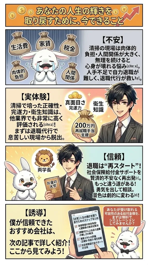 「自分には掃除しかできない」と思い込むのは、今日で終わりにしましょう。あなたが現場で培った資質は、他業界から見れば「喉から手が出るほど欲しい」能力です。