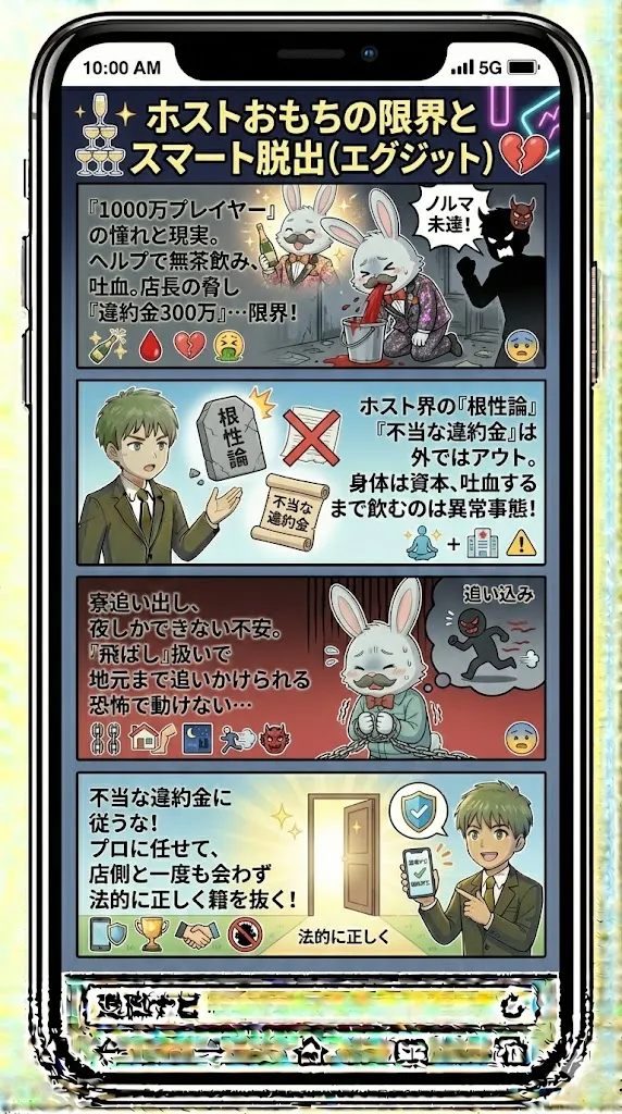 - 店の引き止めや違約金が怖いなら、弁護士運営の退職代行で安全に脱出する。