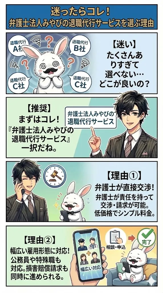 | サービス名 | 弁護士法人みやびの退職代行サービス |