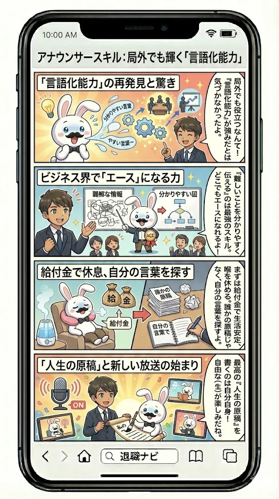 - 注意点: 喋ることは好きだけど局の体制が嫌なら「フリー」や「講師」へ。放送業界そのものが嫌なら「完全異業種」へ。この切り分けが「後悔しないポイント」です。
