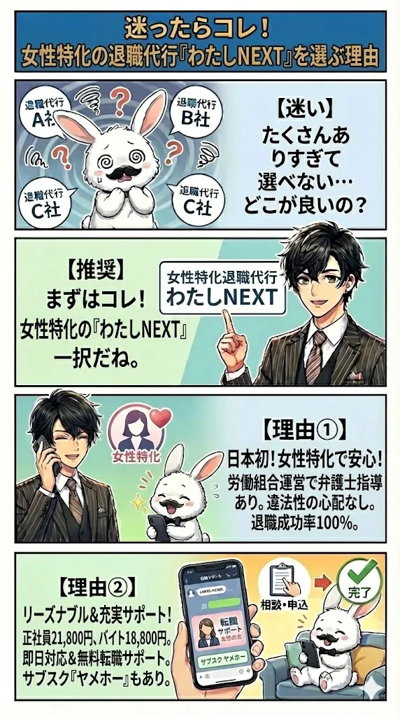 - 退職できなければ全額返金保証、24時間受付で即日退職に対応。