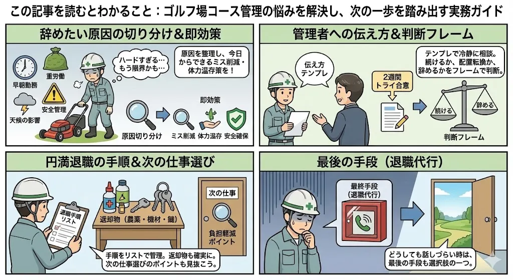 - ゴルフ場コース管理で辞めたいと感じる原因の切り分け
