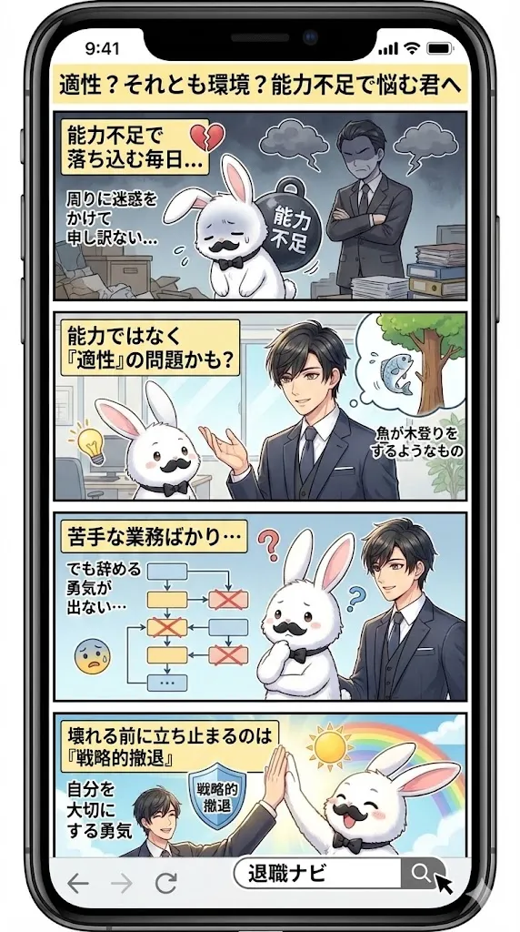 「仕事が覚えられない」「ミスばかりで周りに迷惑をかけている」「自分はなんて無能なんだろう……」 そんな風に、毎日自分を責め続けてはいませんか?能力不足を感じて「仕事を辞めたい」と悩むのは、決してあなただけではありません。多くの真面目な人が、自分への失望や職場への申し訳なさから、出口の見えない暗闇の中にいます。