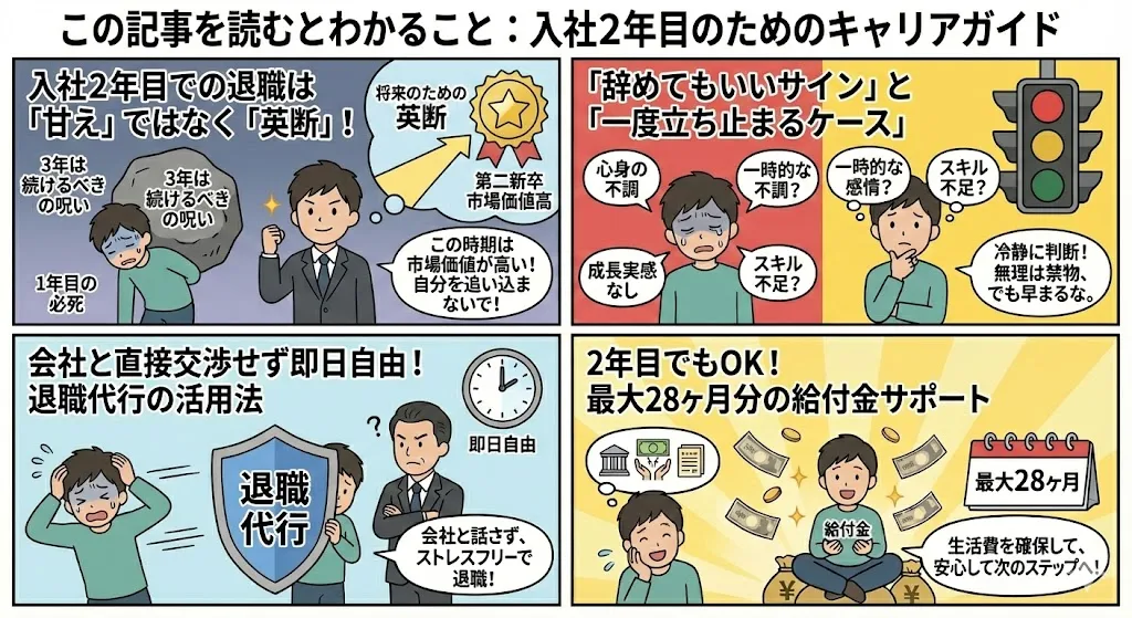 - 2年目での退職は「甘え」ではなく、将来を見据えた「戦略的撤退」である。