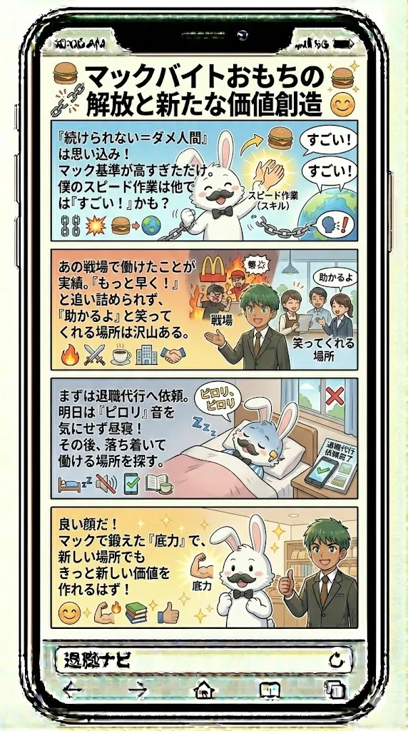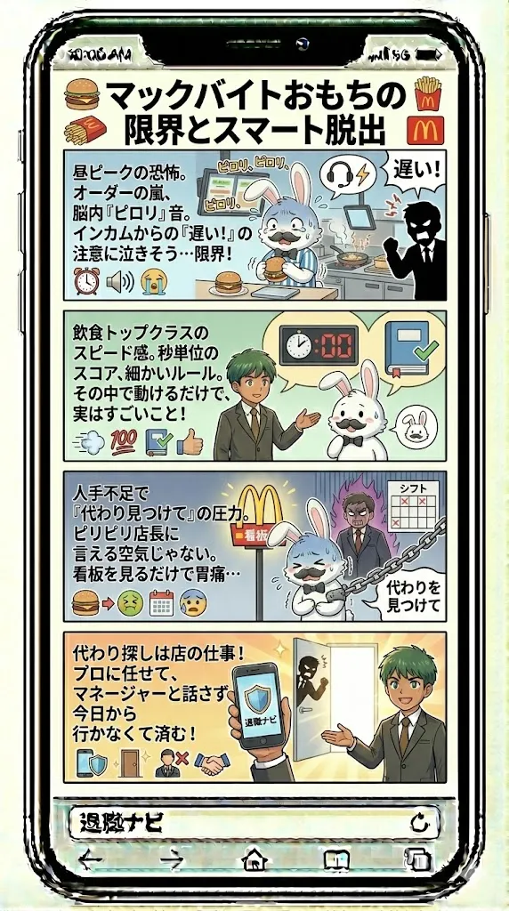 - マック特有の「強引な引き止め」や「責任感」から解放され、即日で辞める方法