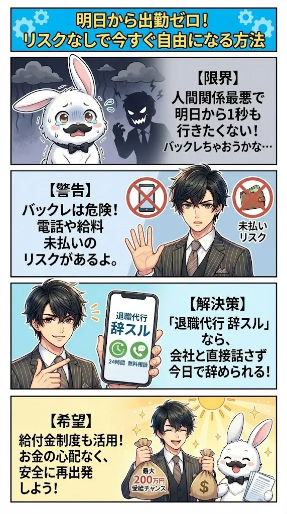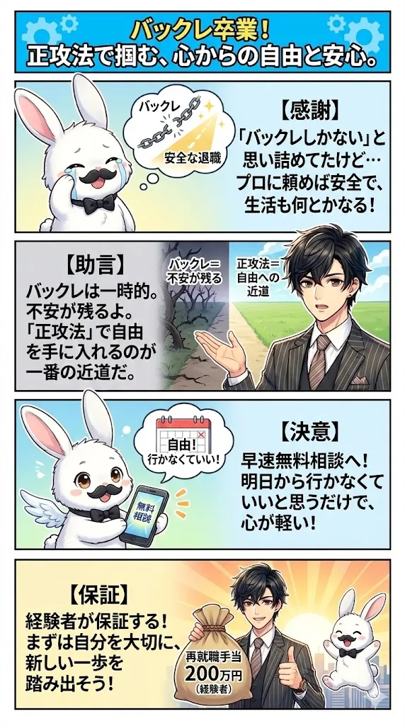 しかし、バックレはあなた自身の未来を汚すリスクが伴います。実は、バックレという危険な橋を渡らなくても、「今日、この瞬間」に安全かつ確実にバイトを辞める方法は存在します。